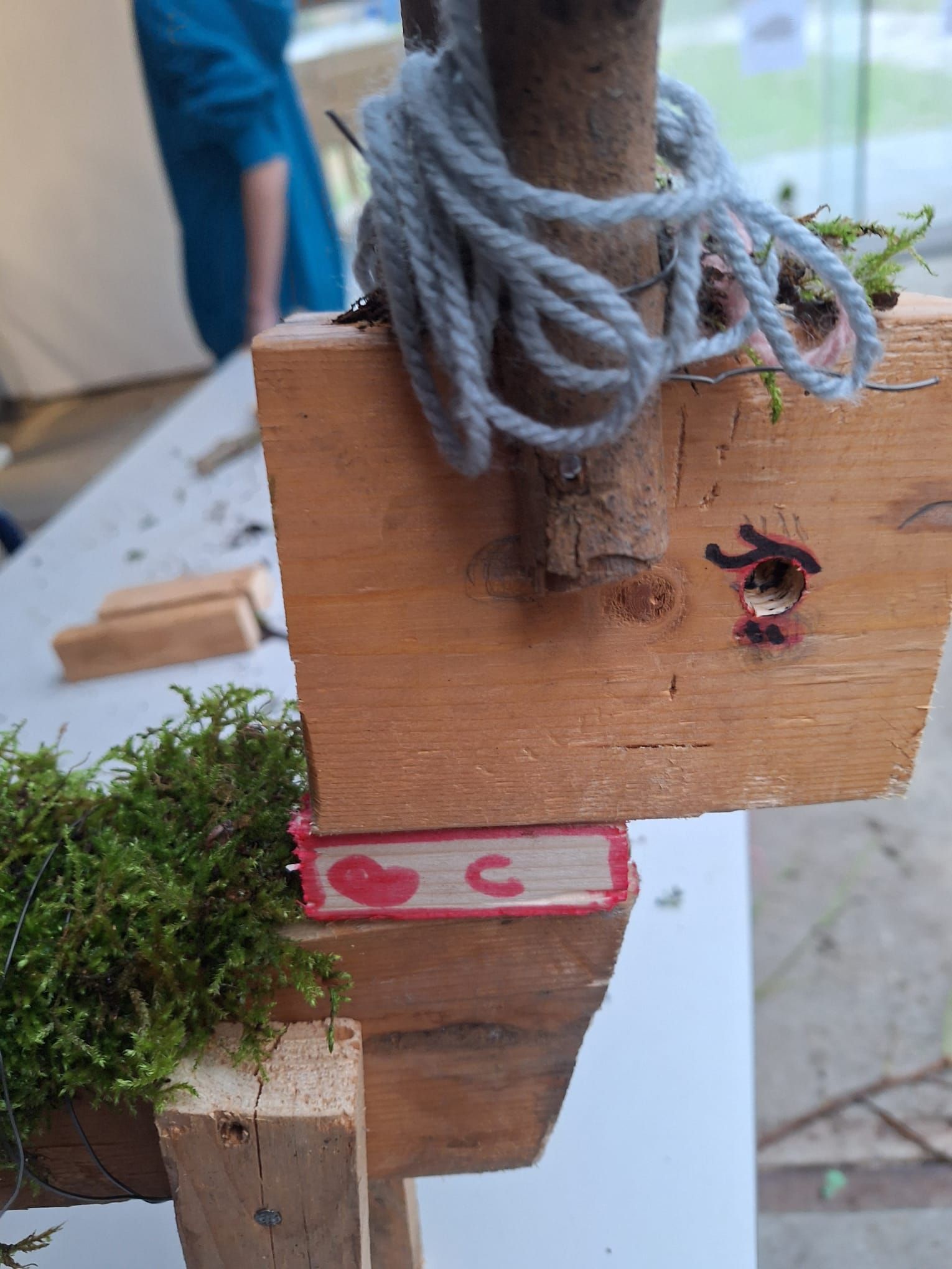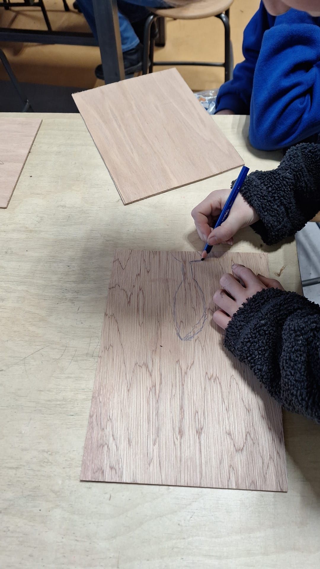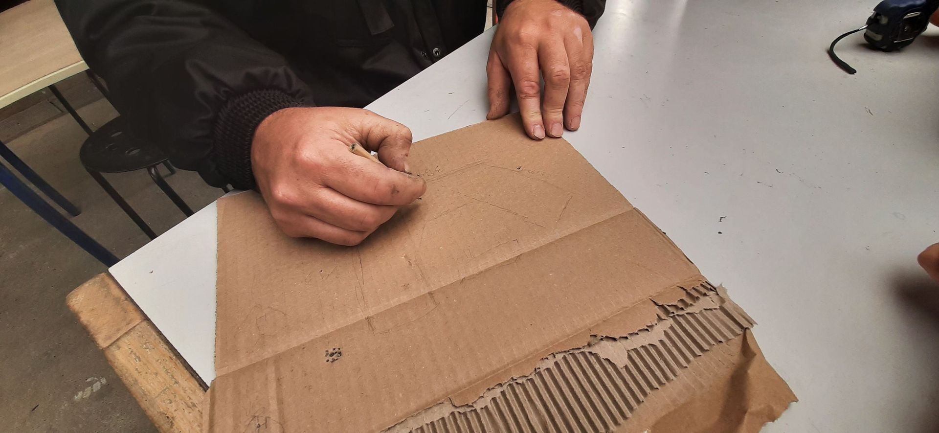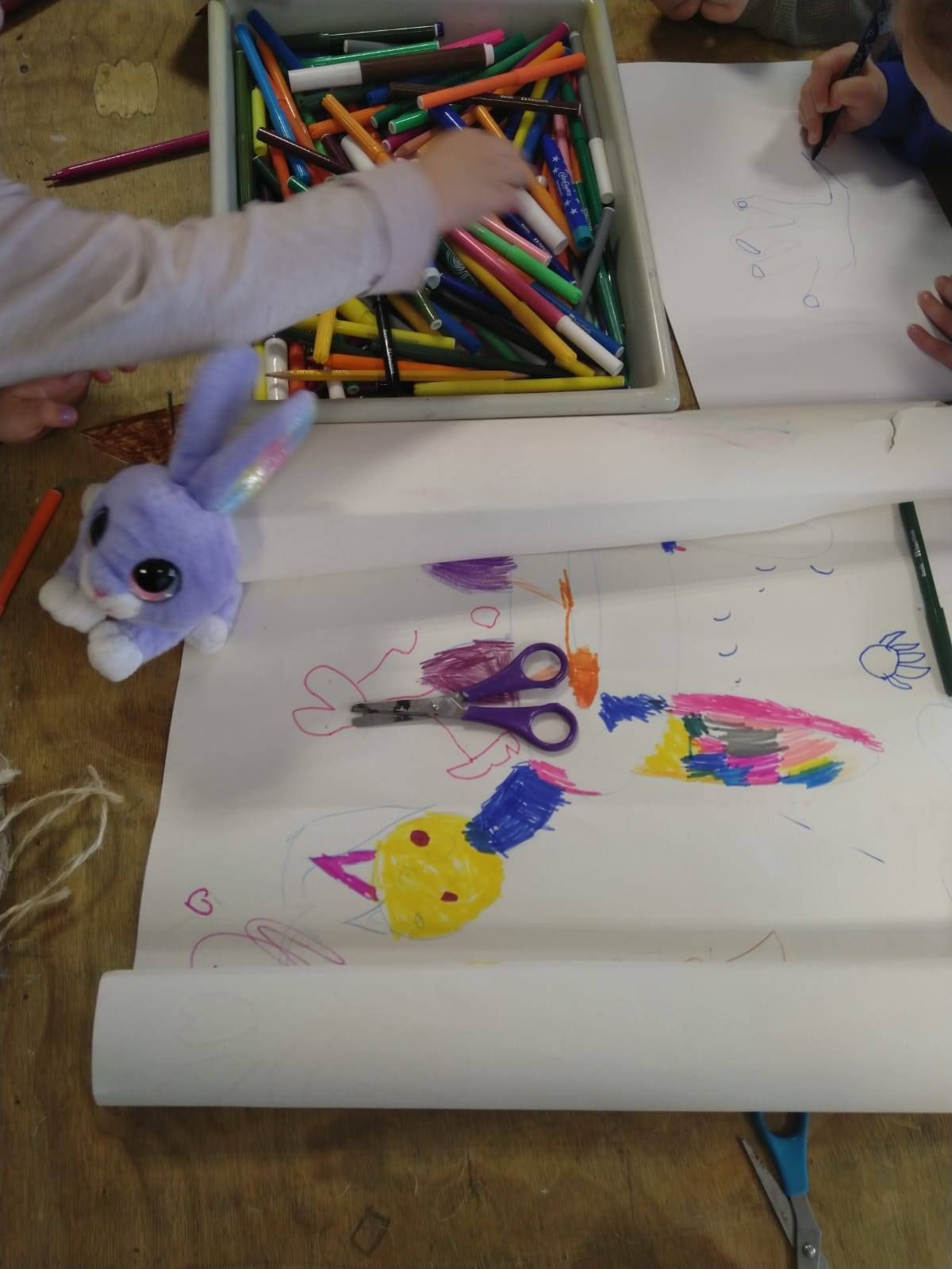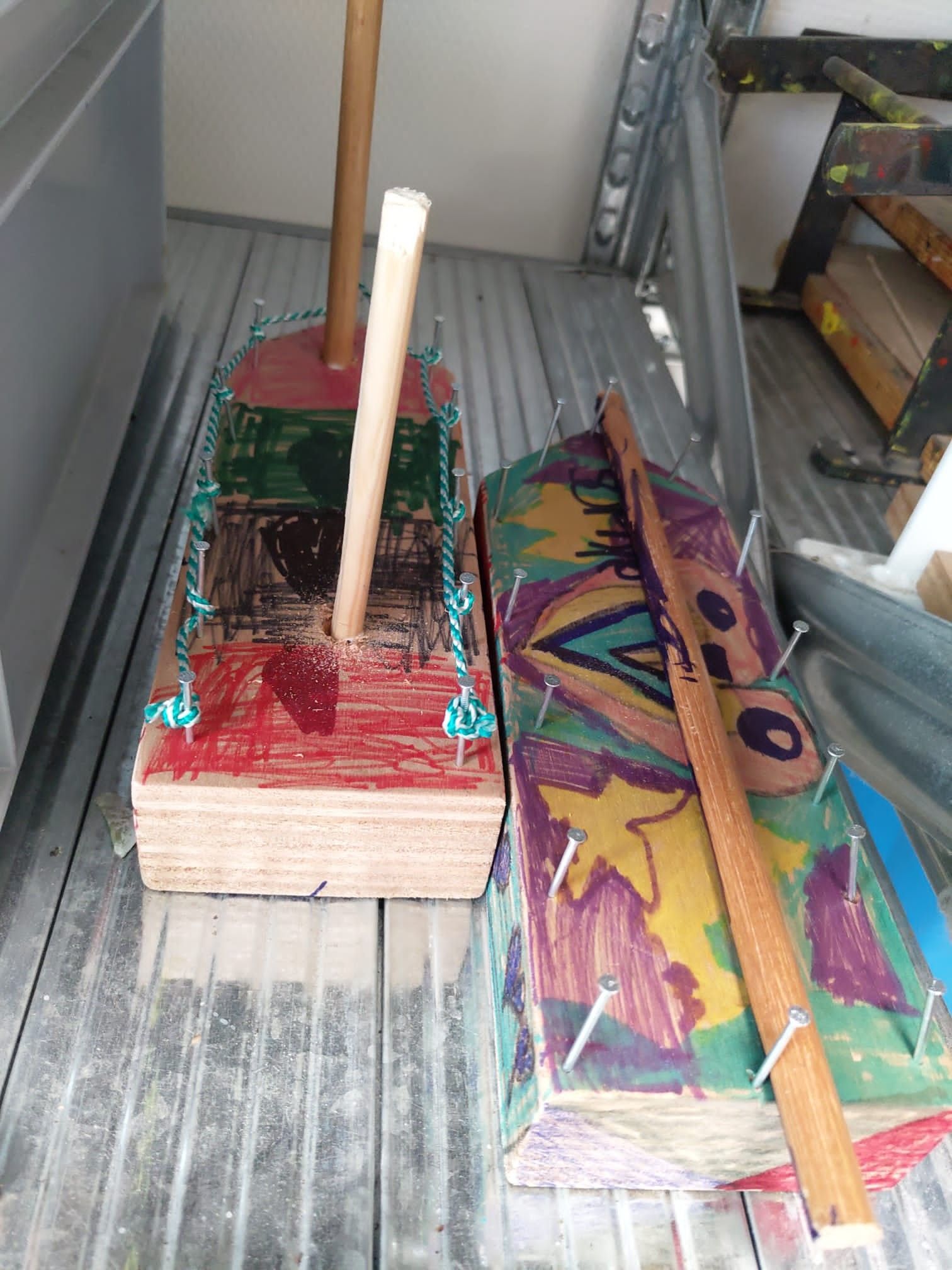 Werkwijze Manuel hij bekijkt alle schetsen welke thema's komen vaak terug wat zijn sterke beelden. Daarmee maakt hij een gezamenlijk kunstwerk. De schets is nu af en morgen plaatst hij het op de panelen. Wij hebben ook een zonnige klusdag gehad.