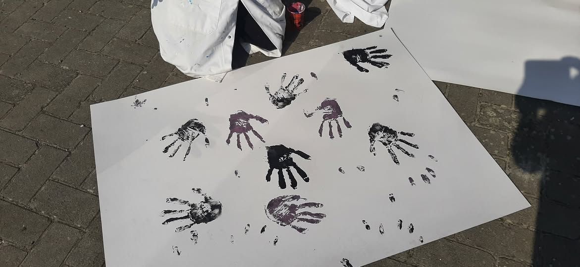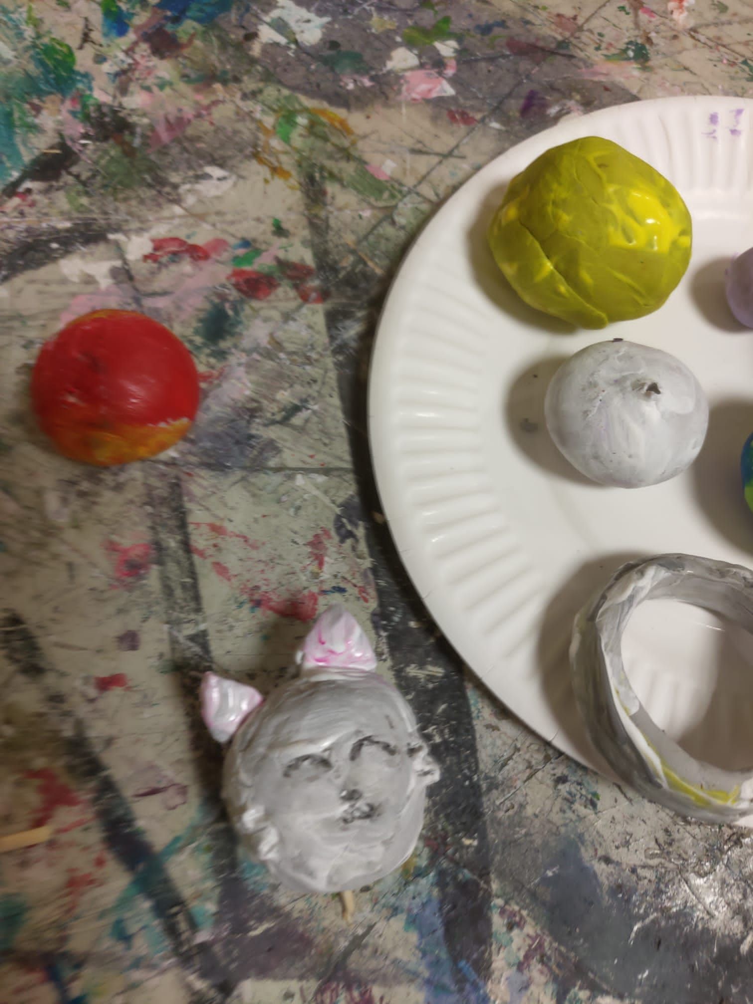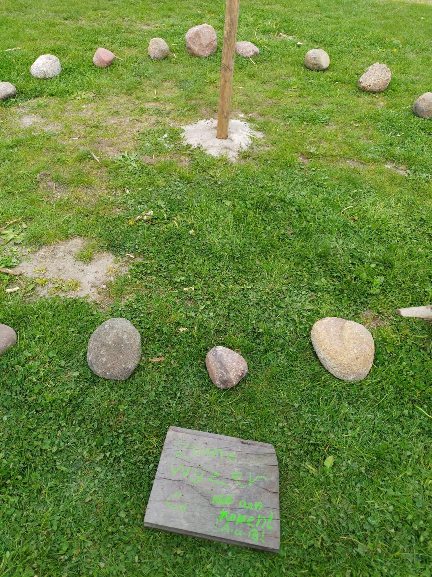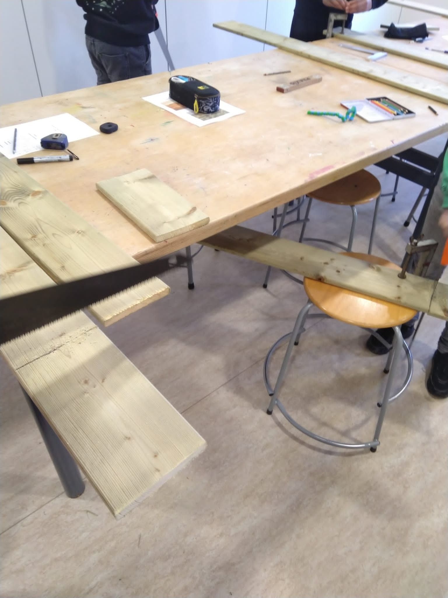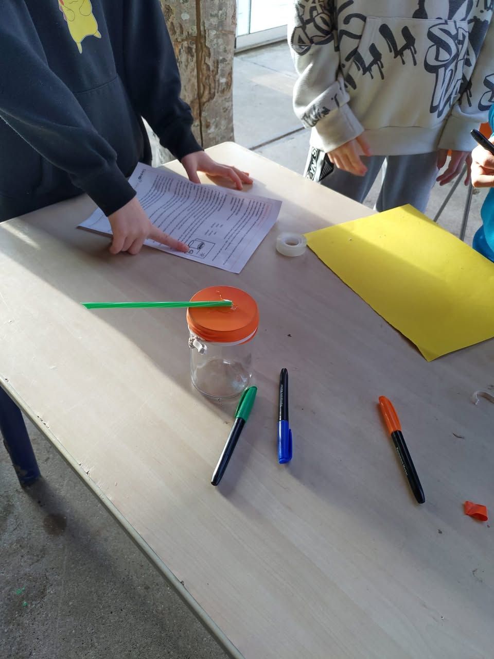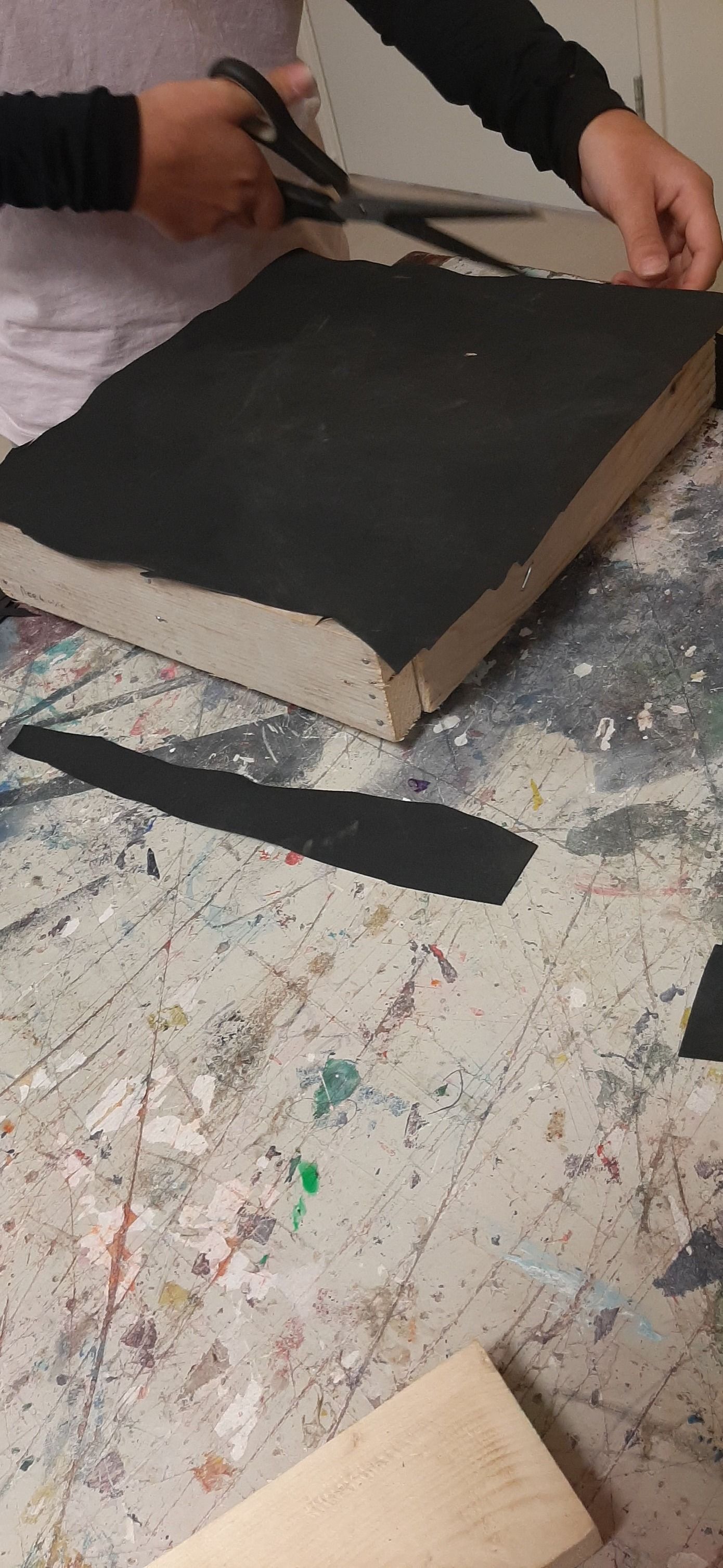 Werkwijze Manuel hij bekijkt alle schetsen welke thema's komen vaak terug wat zijn sterke beelden. Daarmee maakt hij een gezamenlijk kunstwerk. De schets is nu af en morgen plaatst hij het op de panelen. Wij hebben ook een zonnige klusdag gehad.
