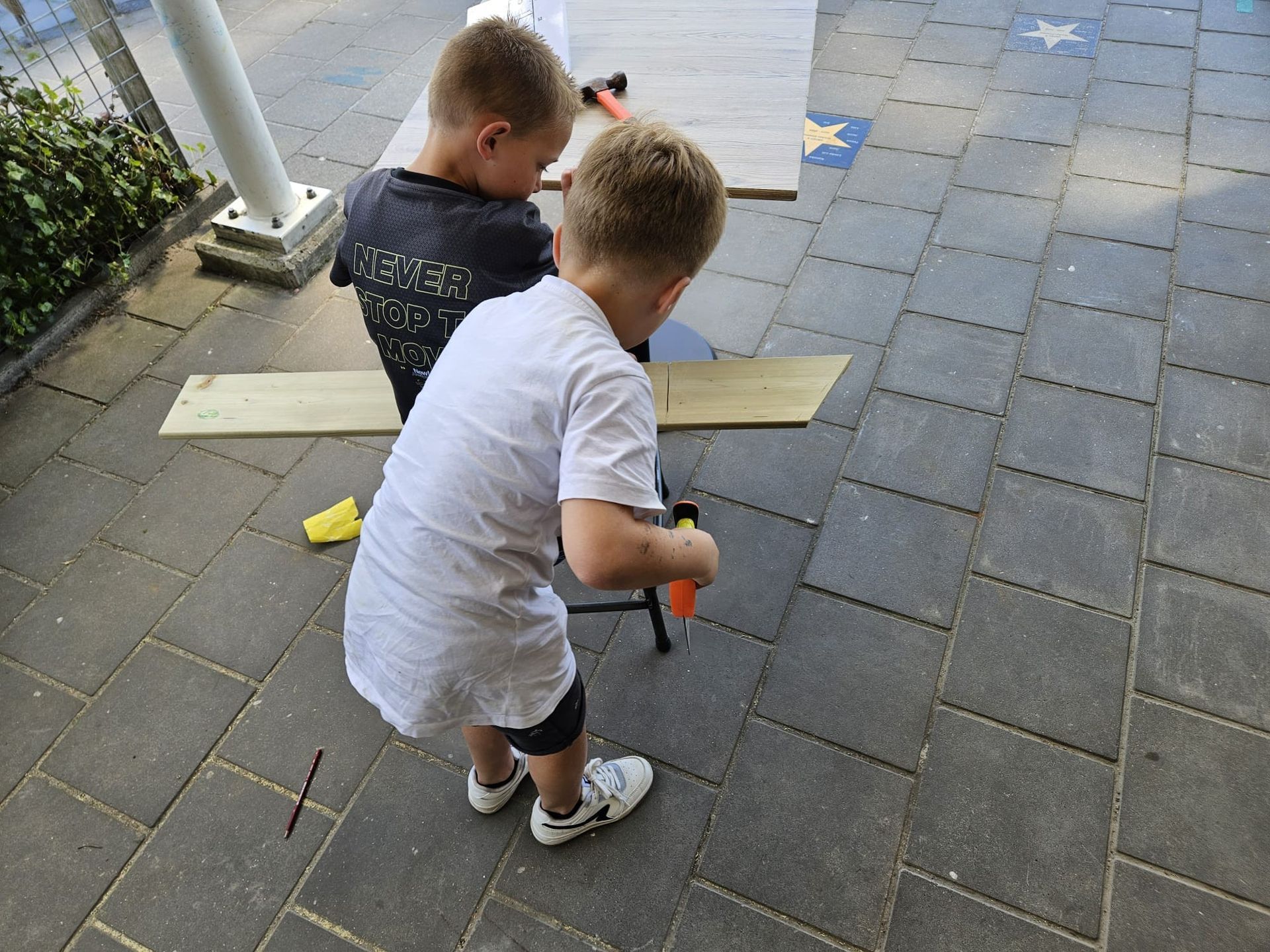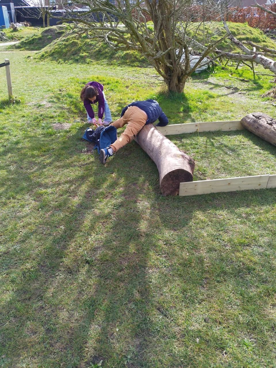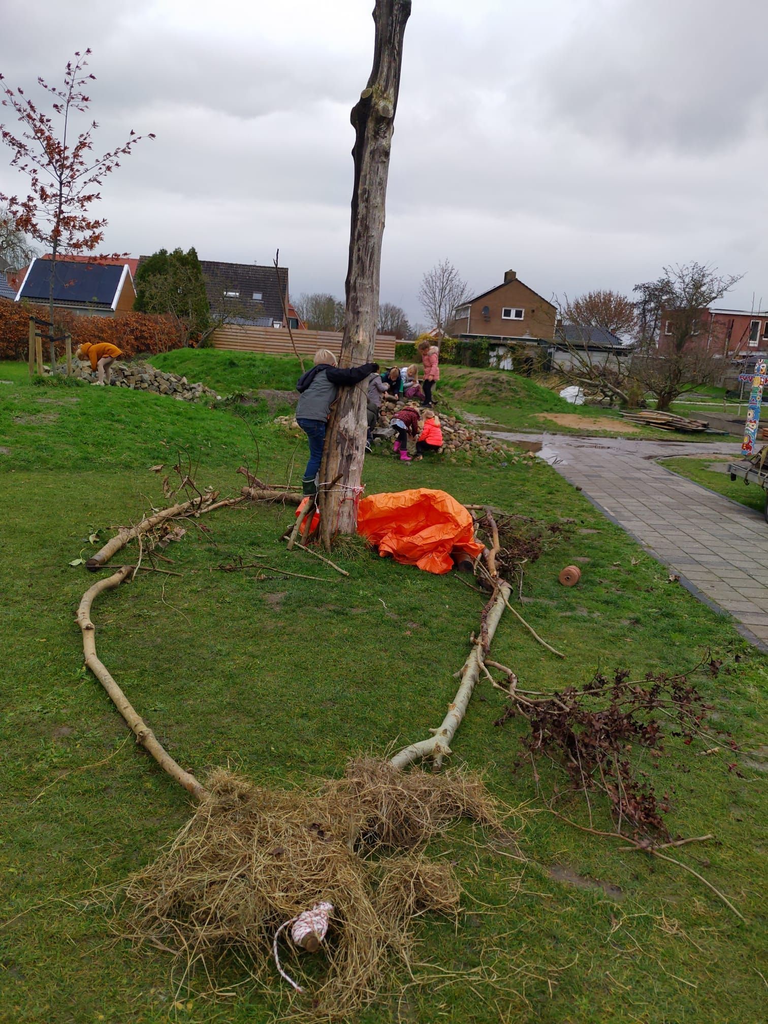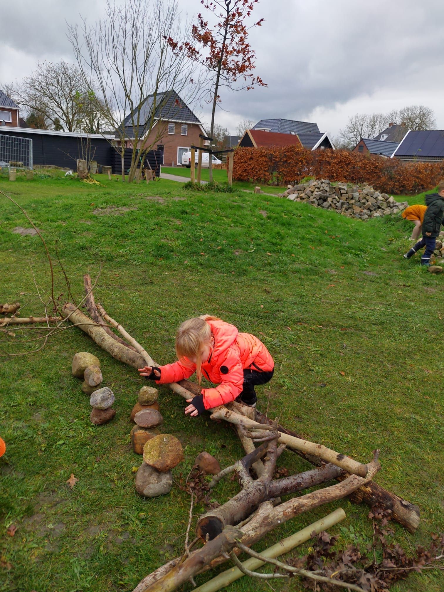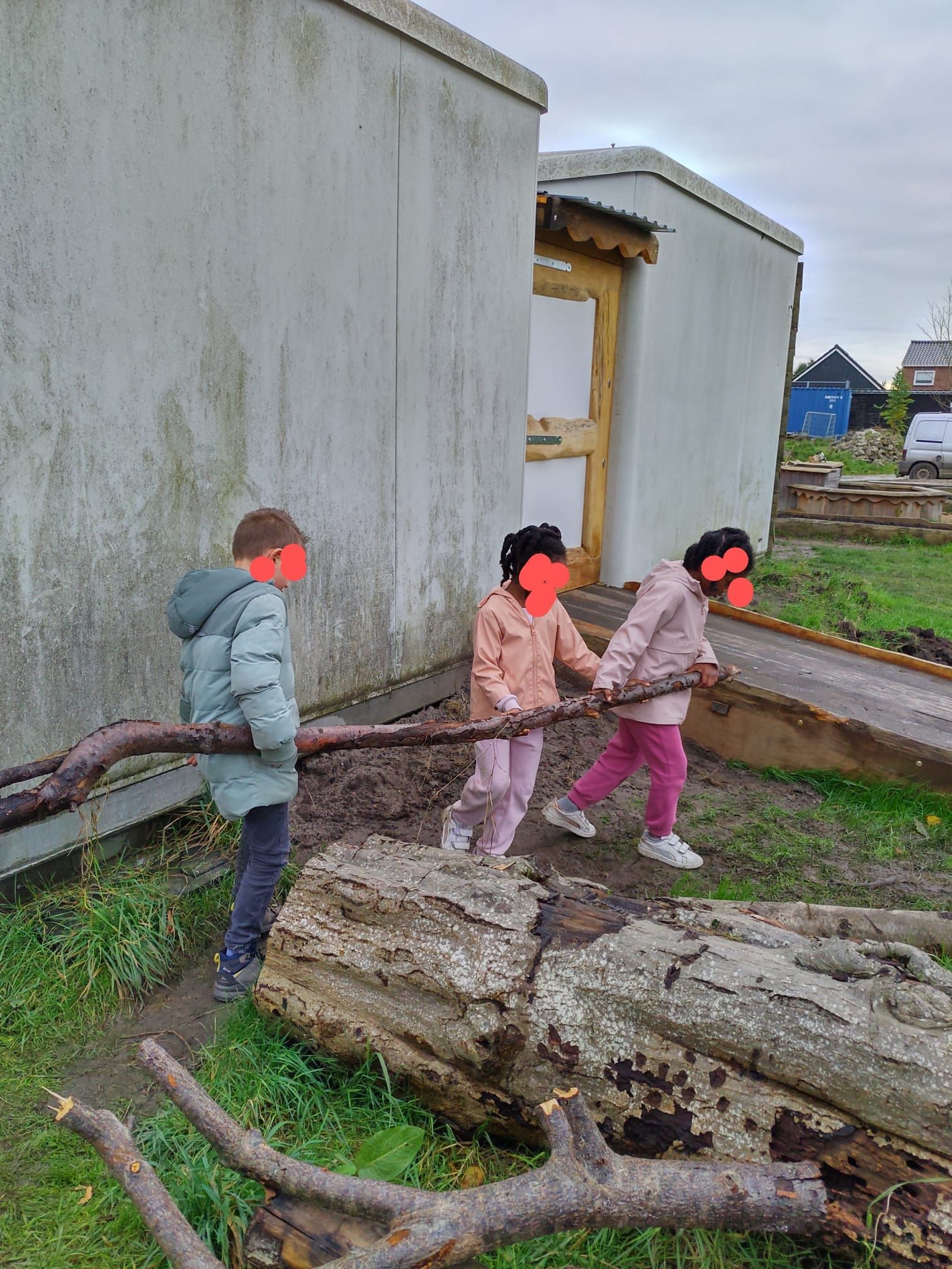 Dinsdagmiddag helpt Kinderopvang Popiez ons een handje en gaan ze lekker spelen met de looseparts op het terrein