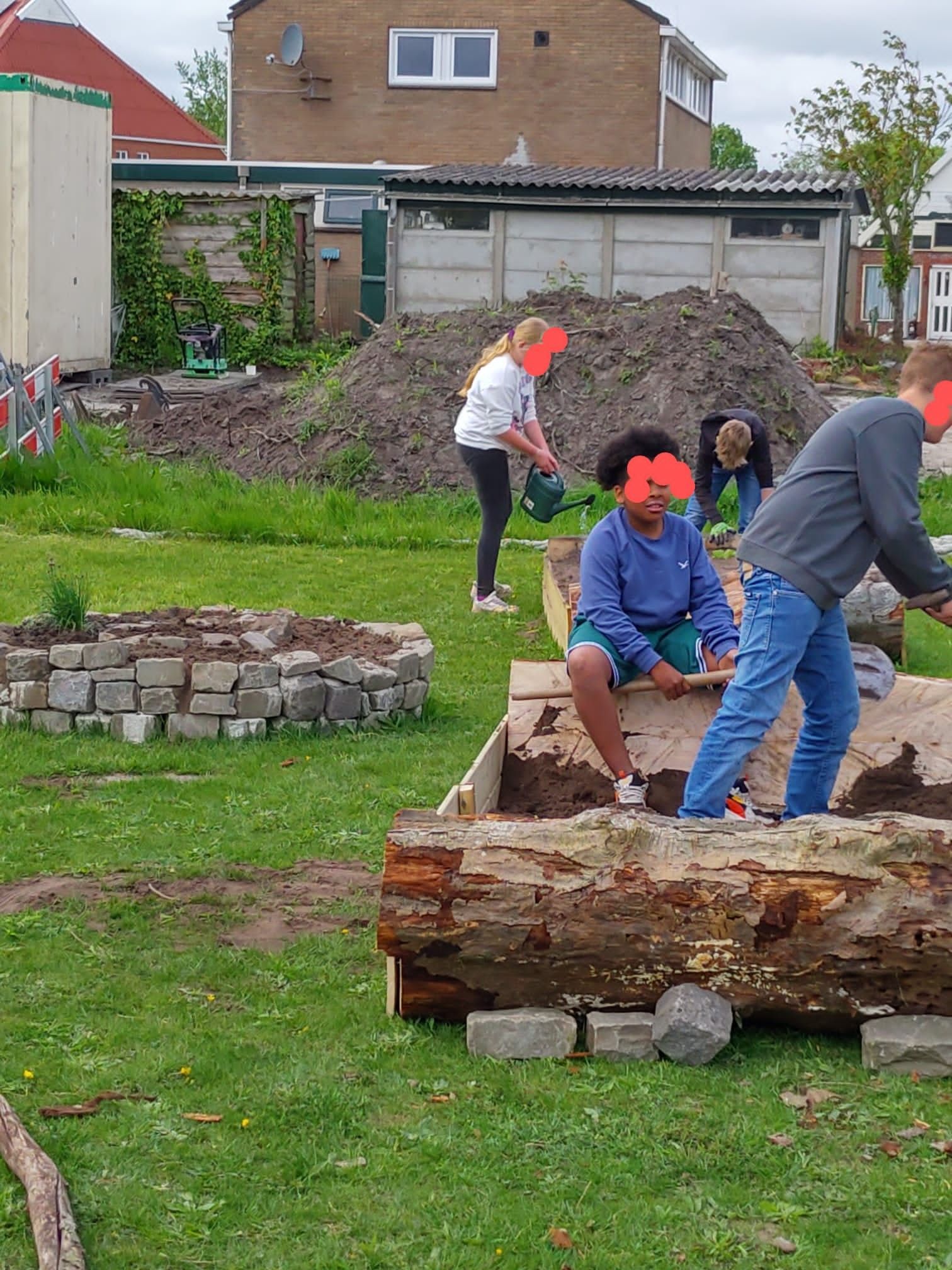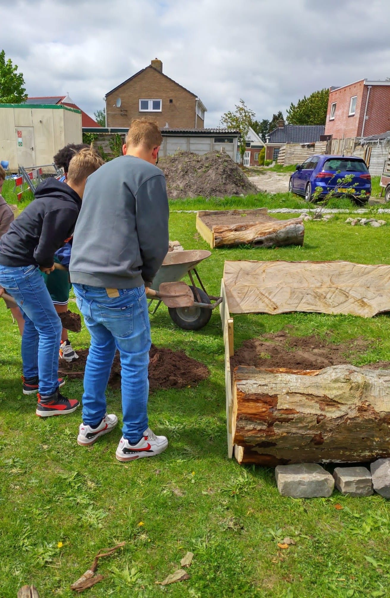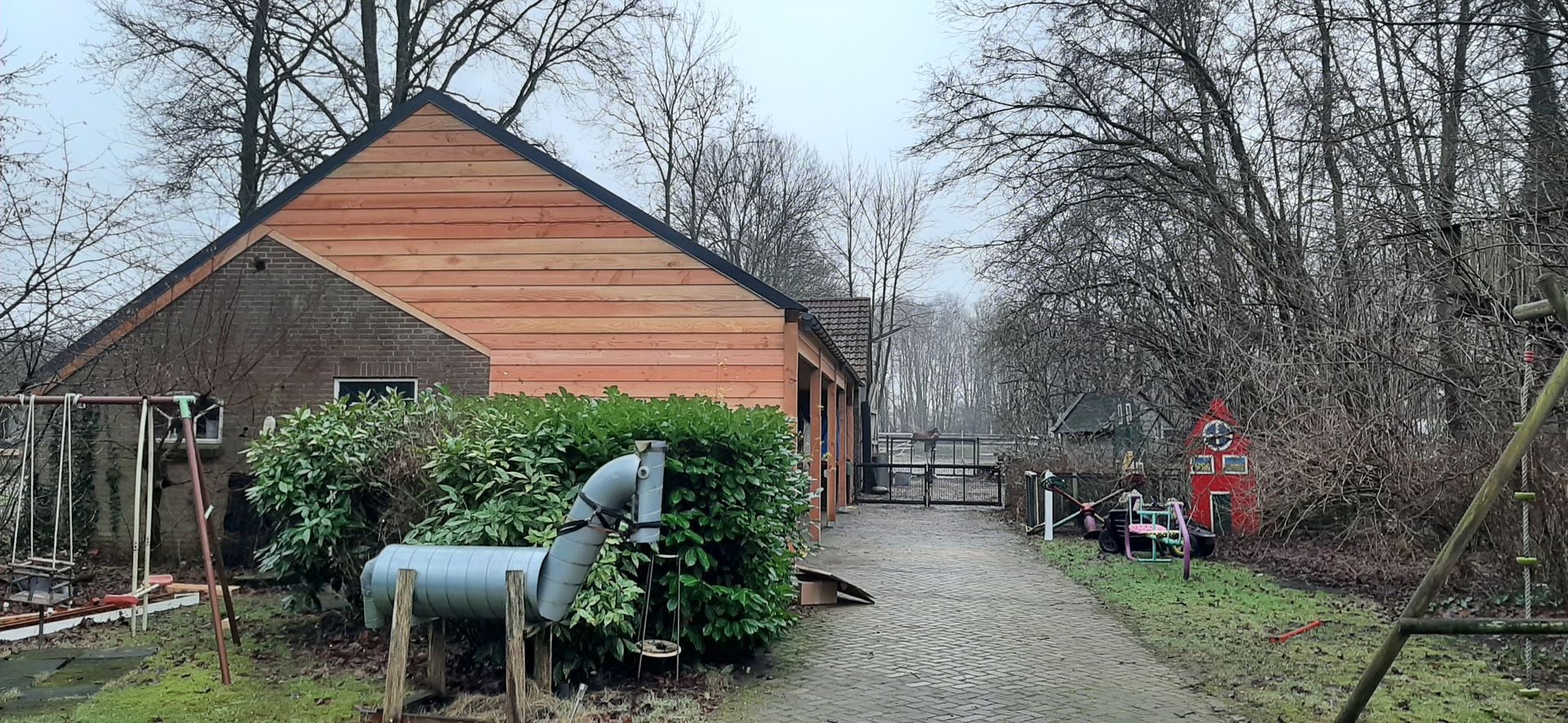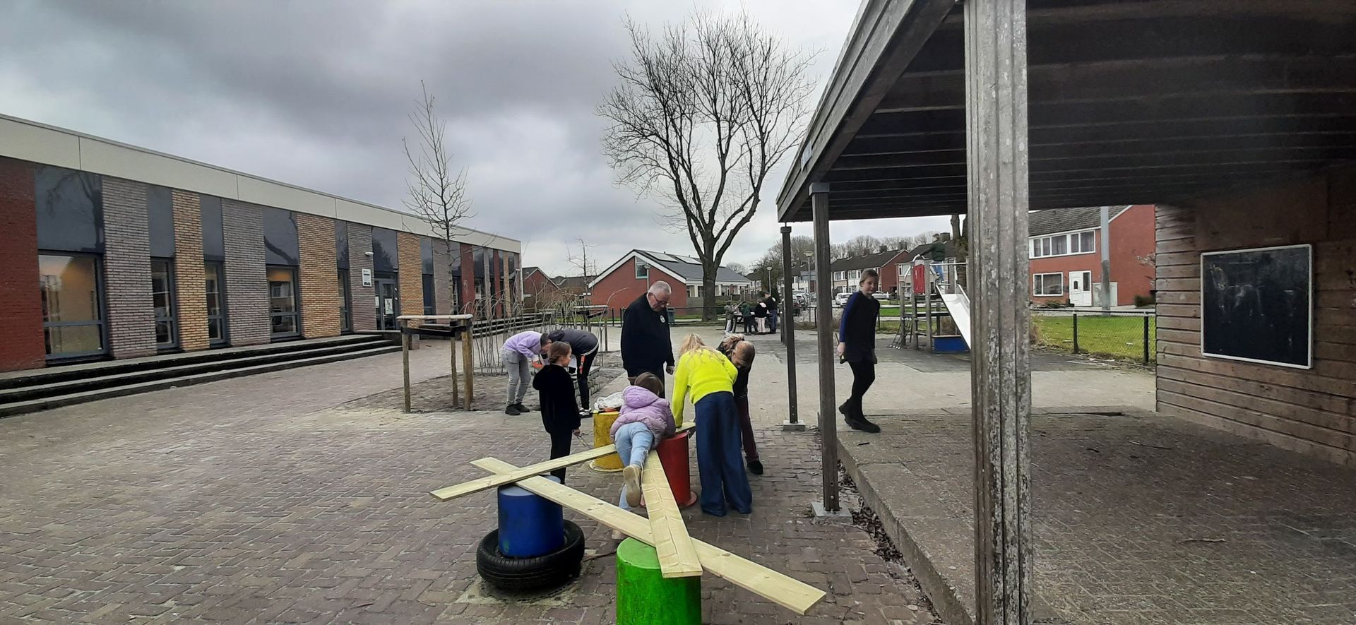 Dinsdagmiddag helpt Kinderopvang Popiez ons een handje en gaan ze lekker spelen met de looseparts op het terrein
