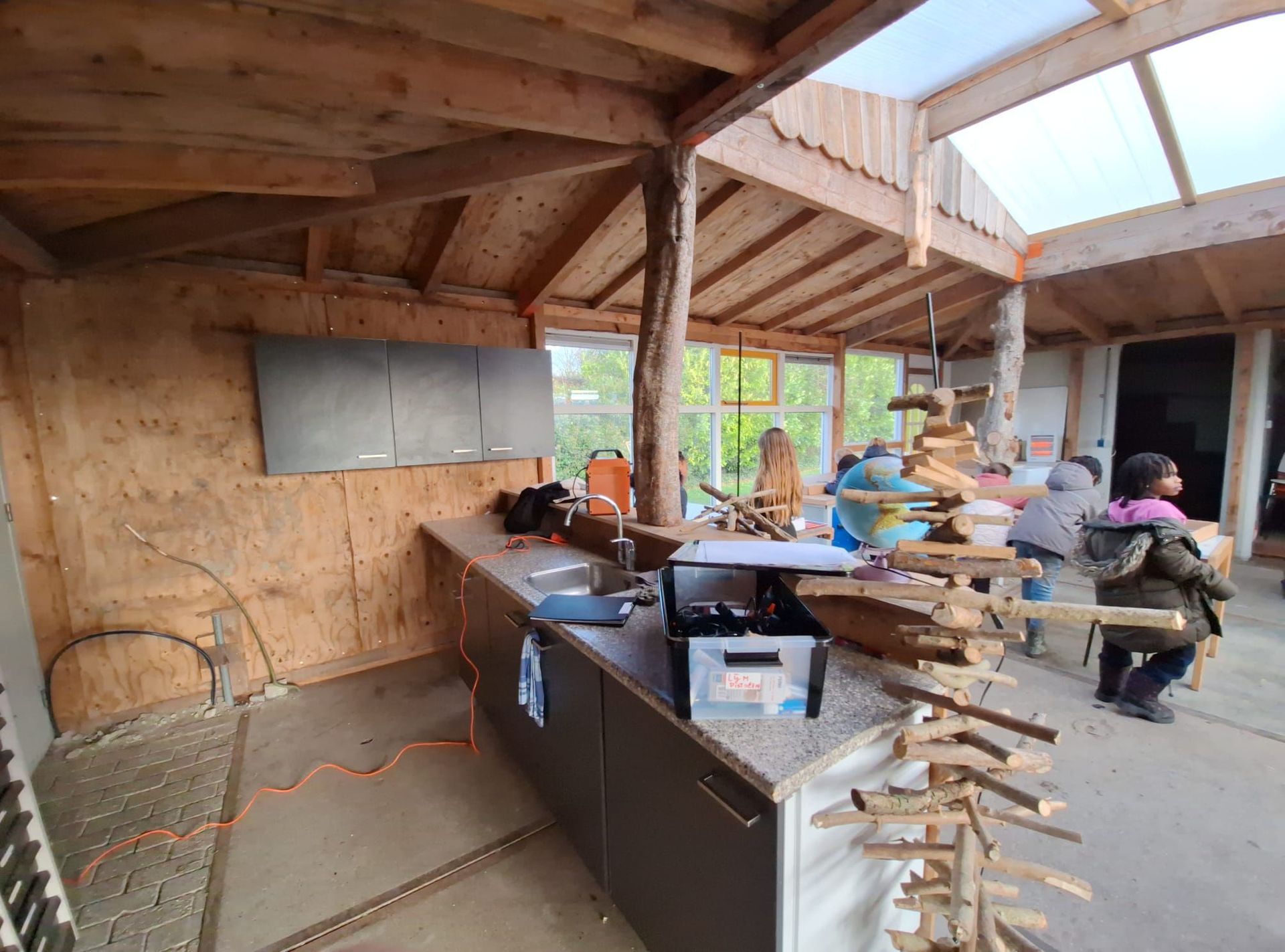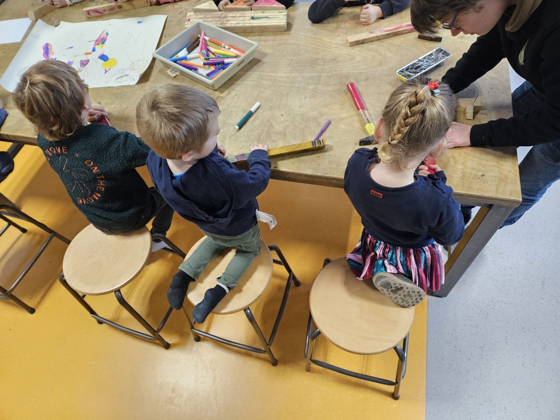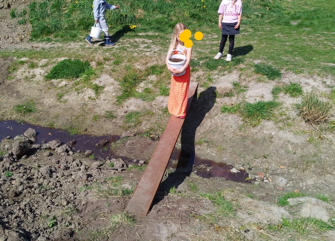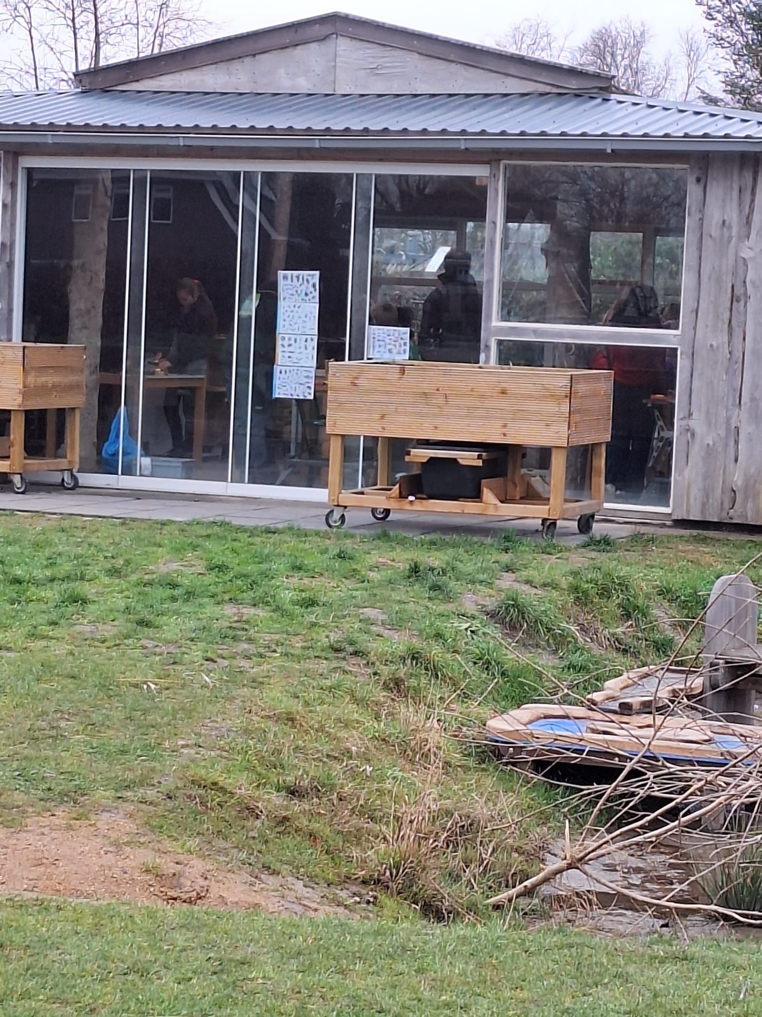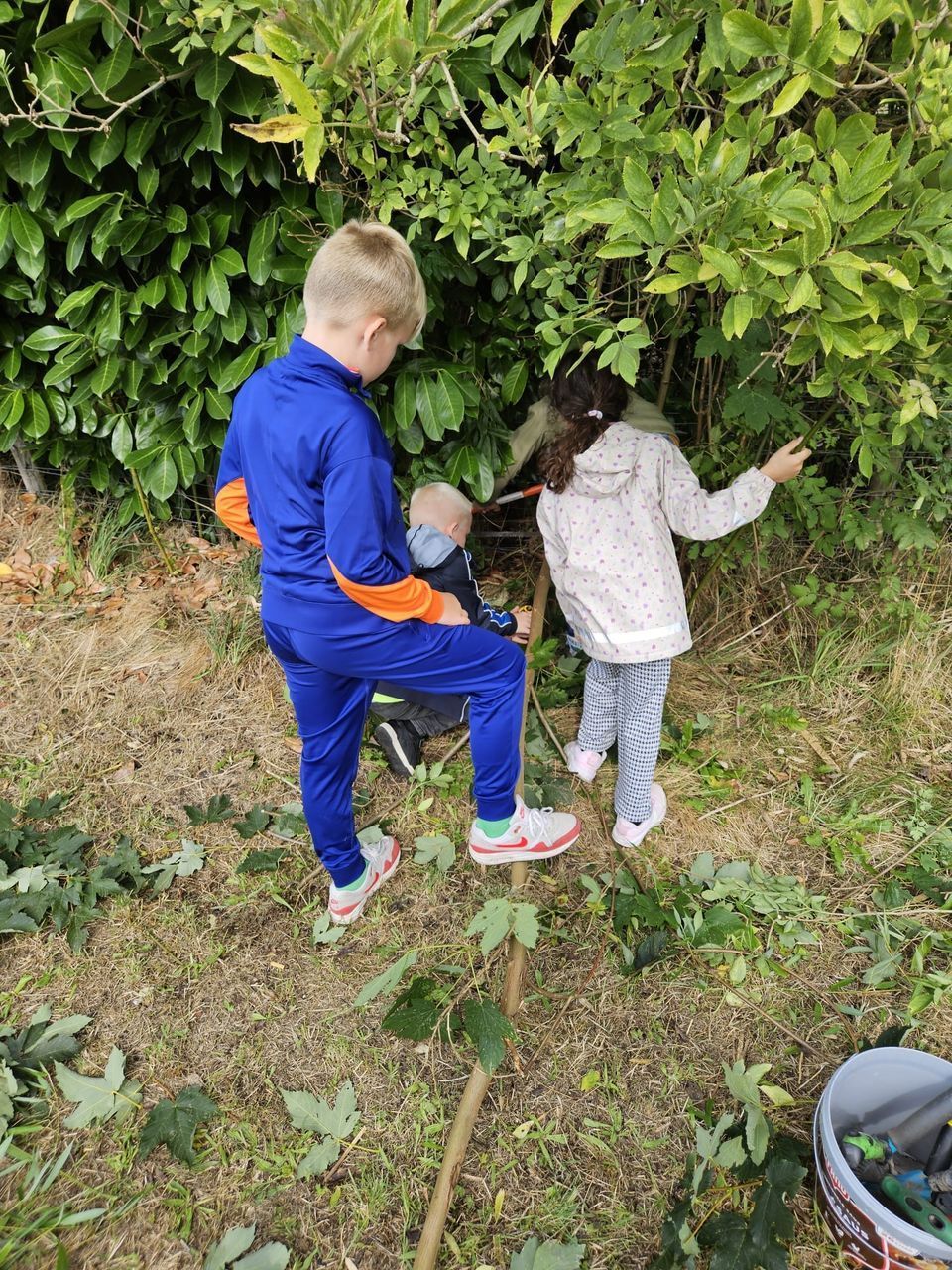Dinsdagmiddag helpt Kinderopvang Popiez ons een handje en gaan ze lekker spelen met de looseparts op het terrein