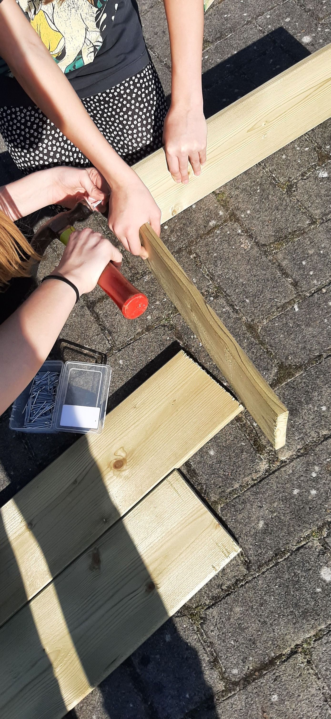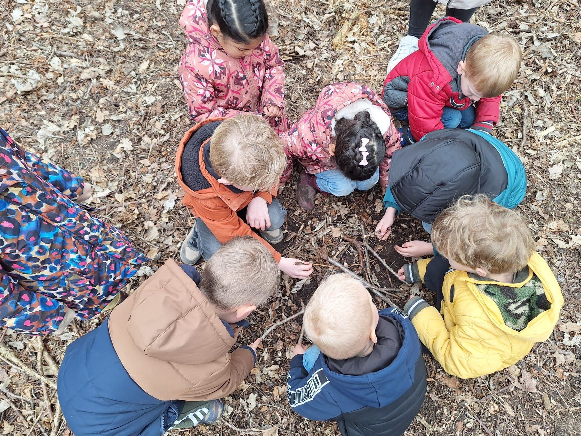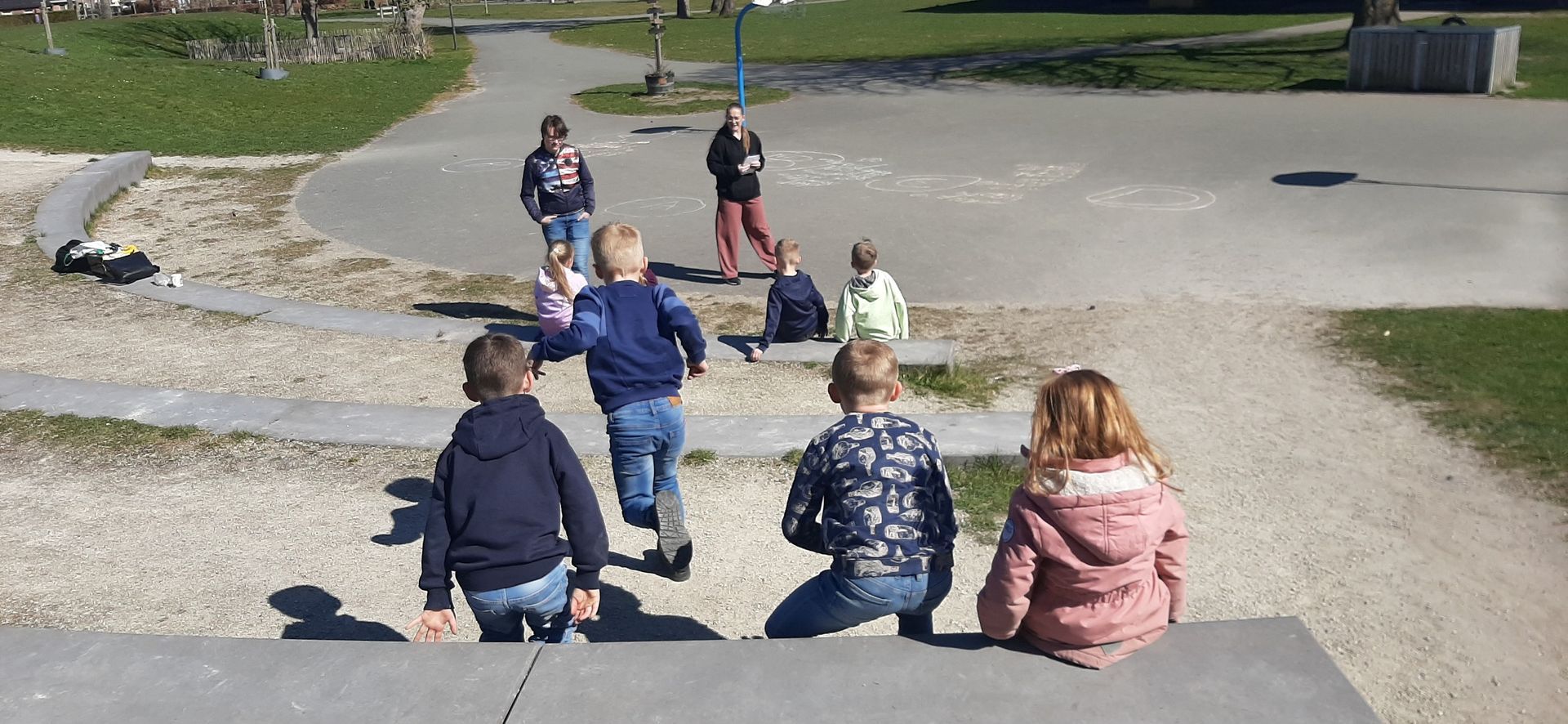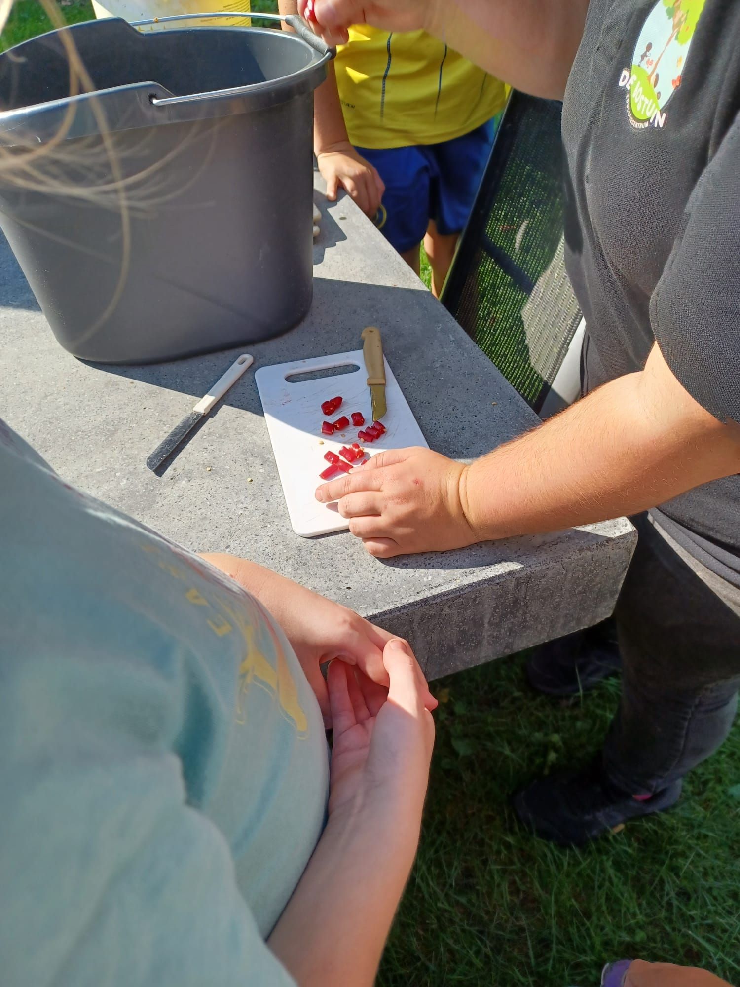 Dinsdagmiddag helpt Kinderopvang Popiez ons een handje en gaan ze lekker spelen met de looseparts op het terrein