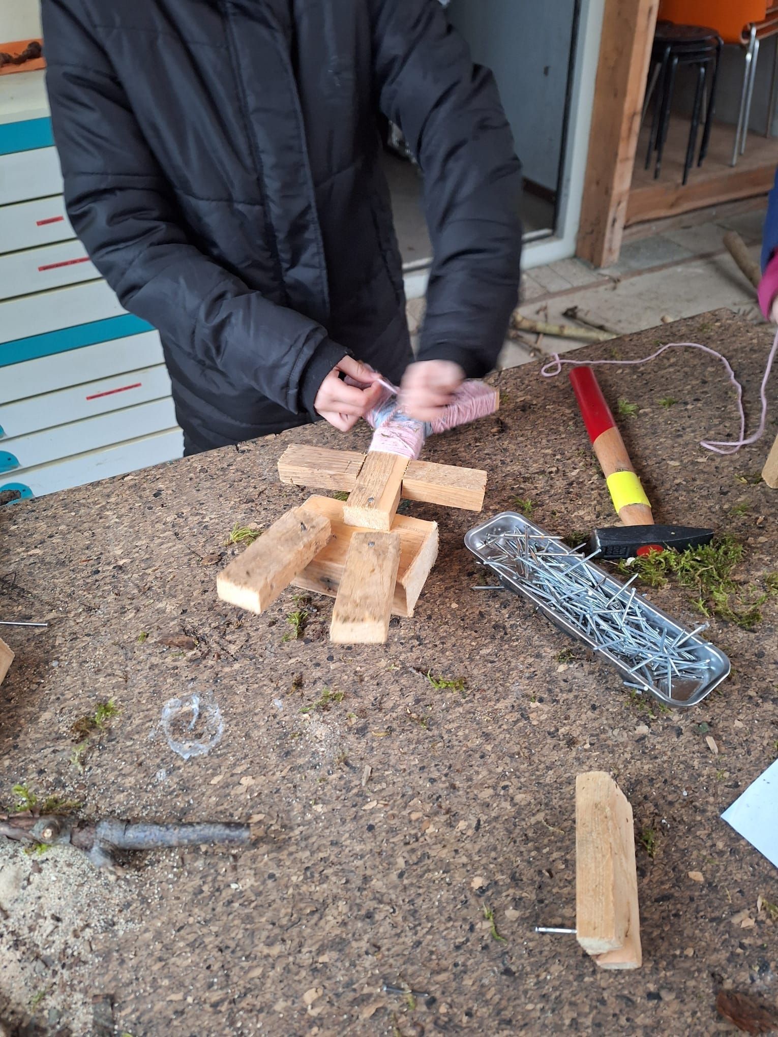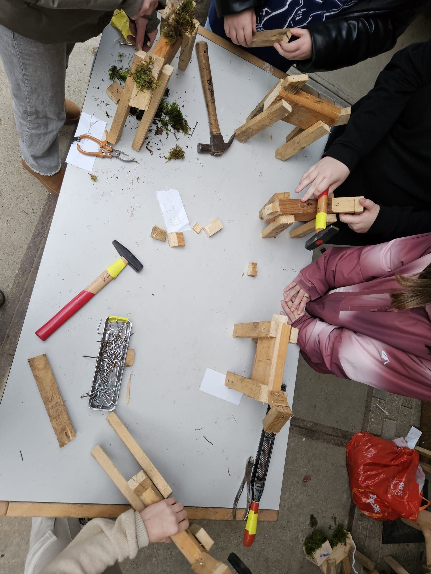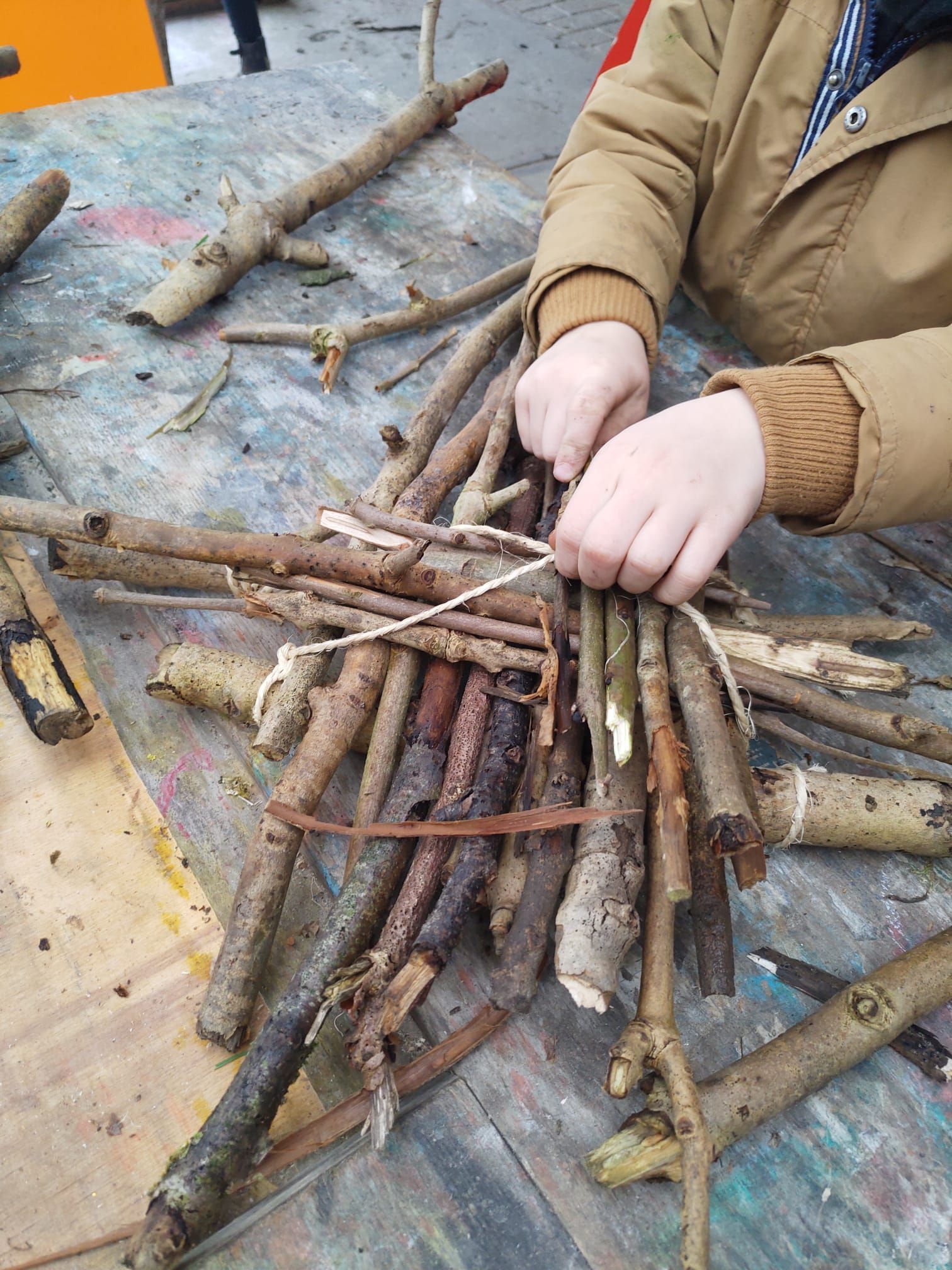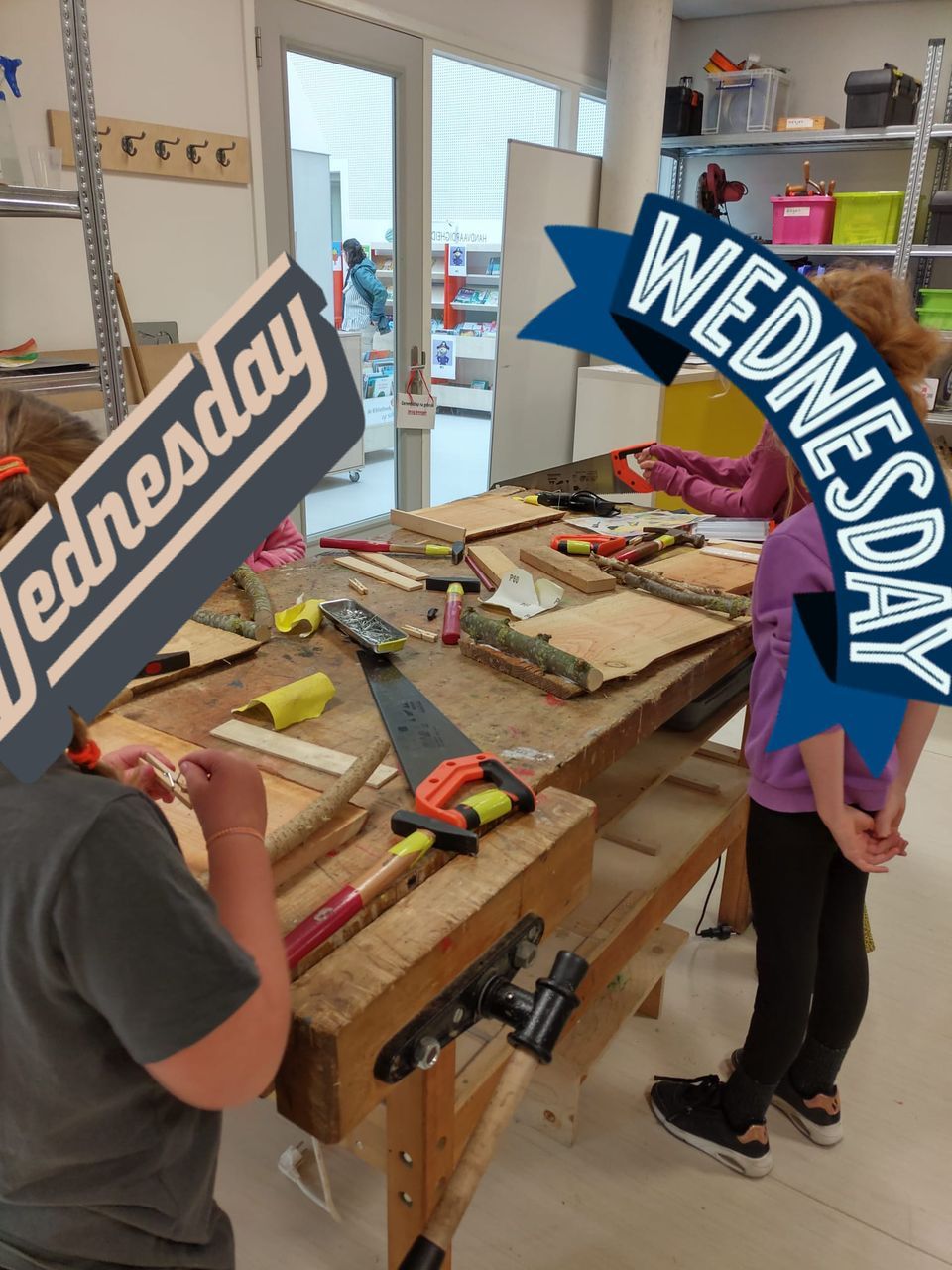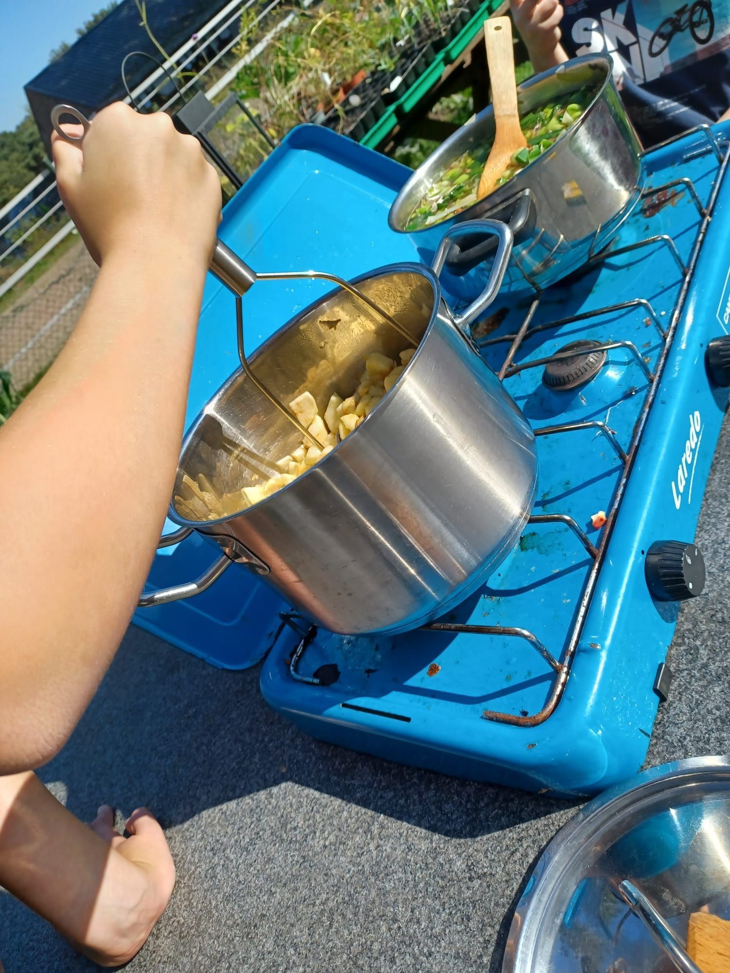 Dinsdagmiddag helpt Kinderopvang Popiez ons een handje en gaan ze lekker spelen met de looseparts op het terrein