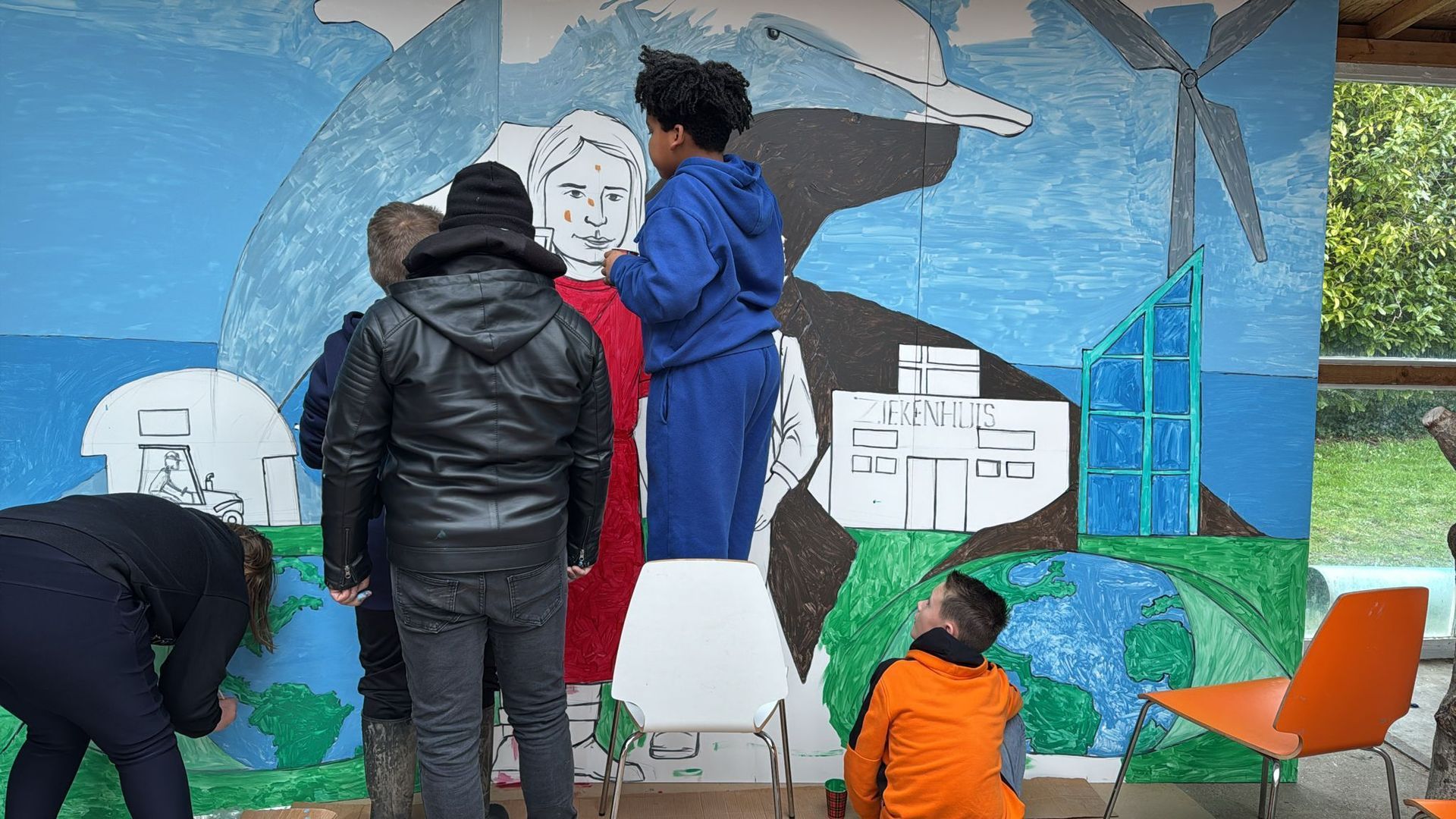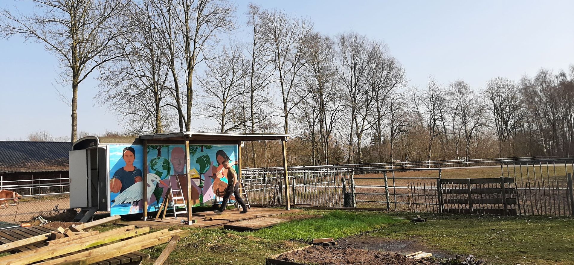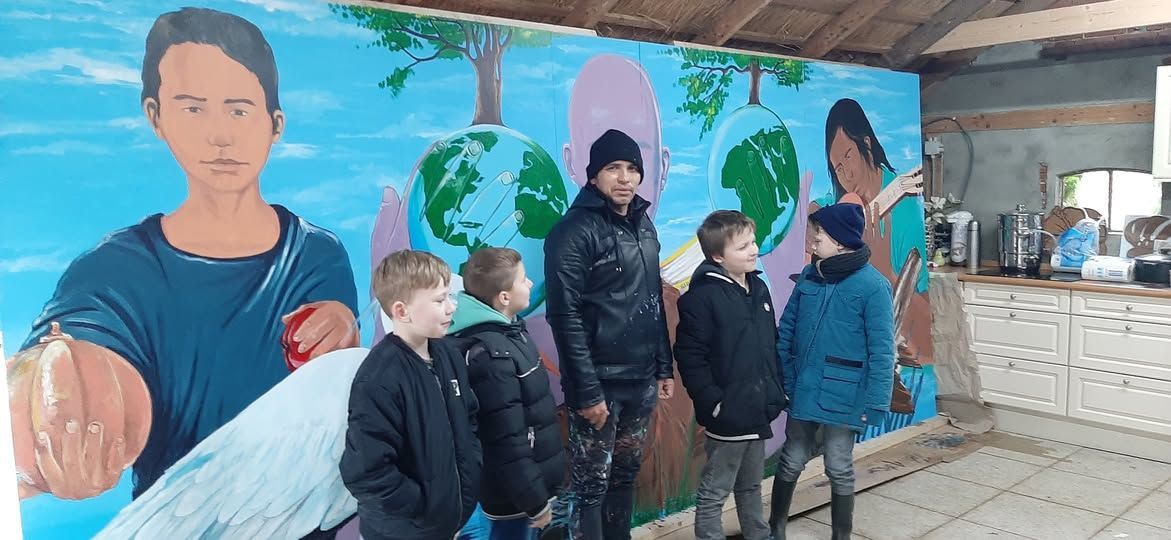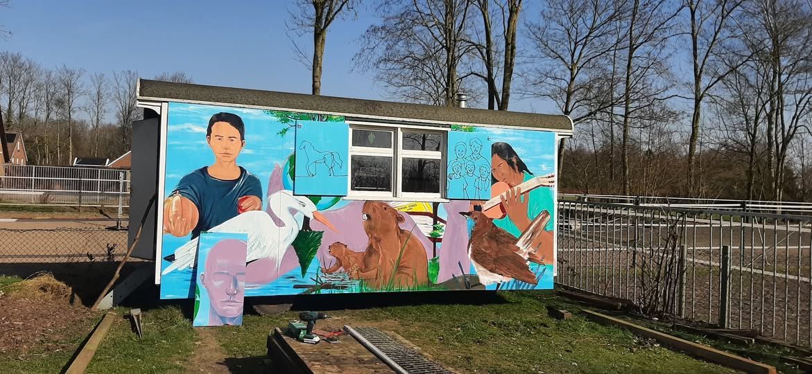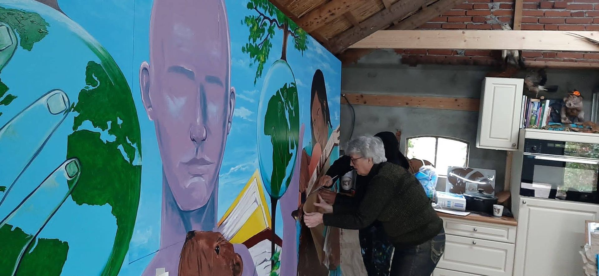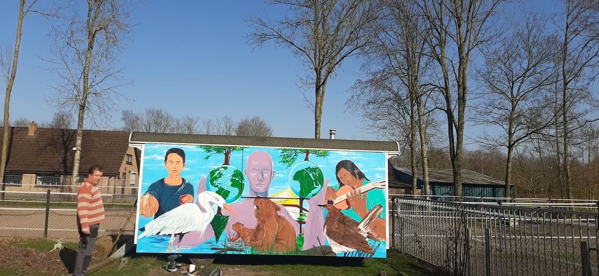 De muurschildering roept op tot een eerlijke en duurzame wereld zowel in Westerwolde