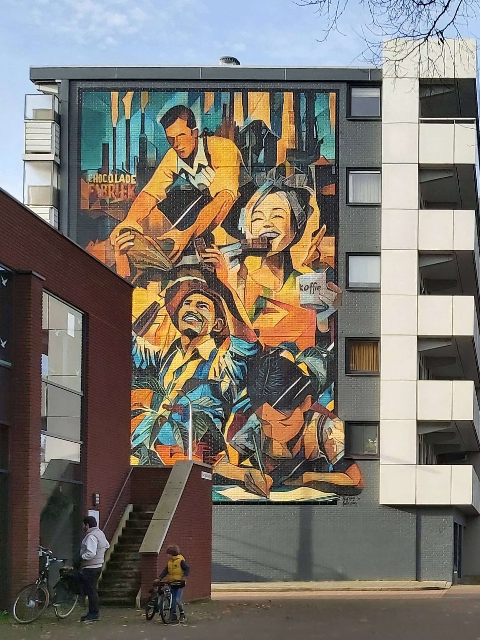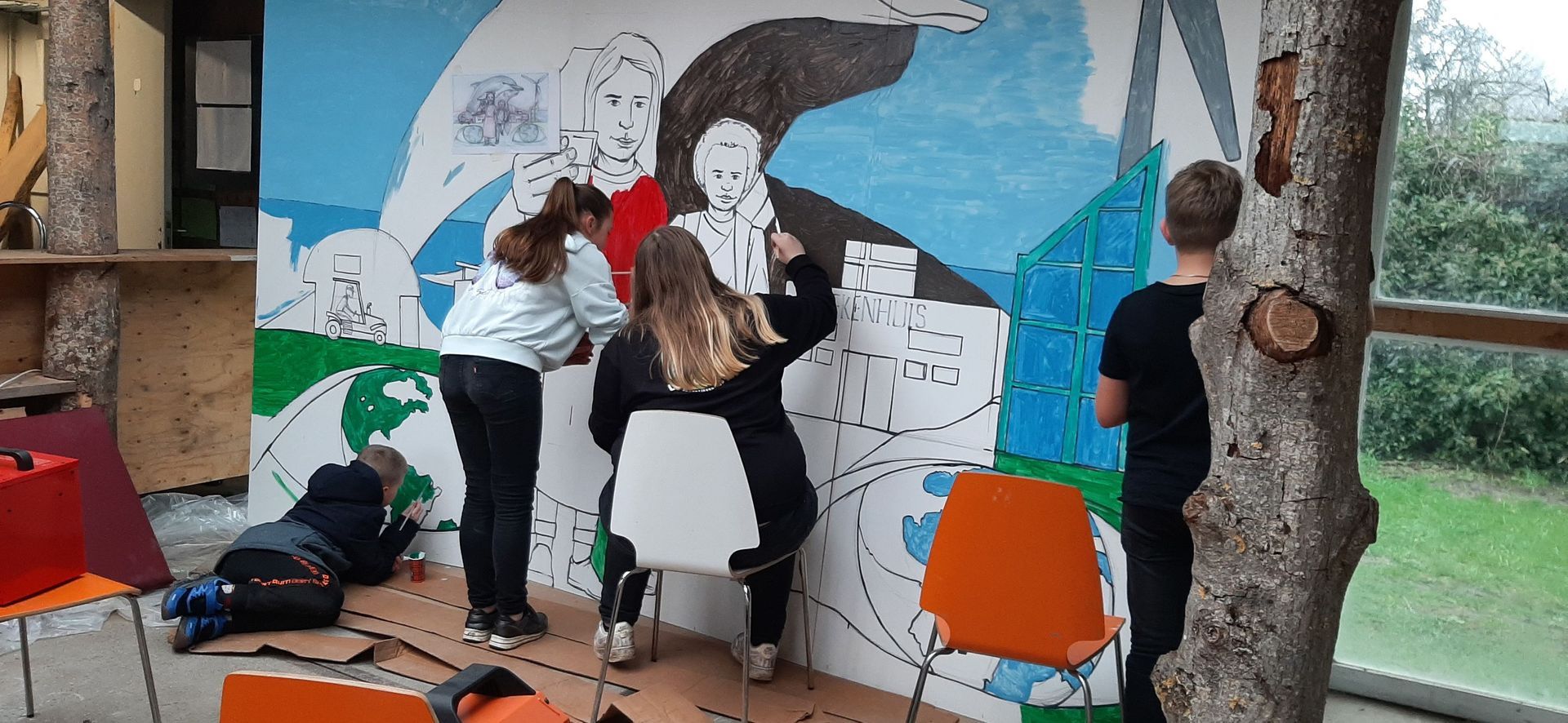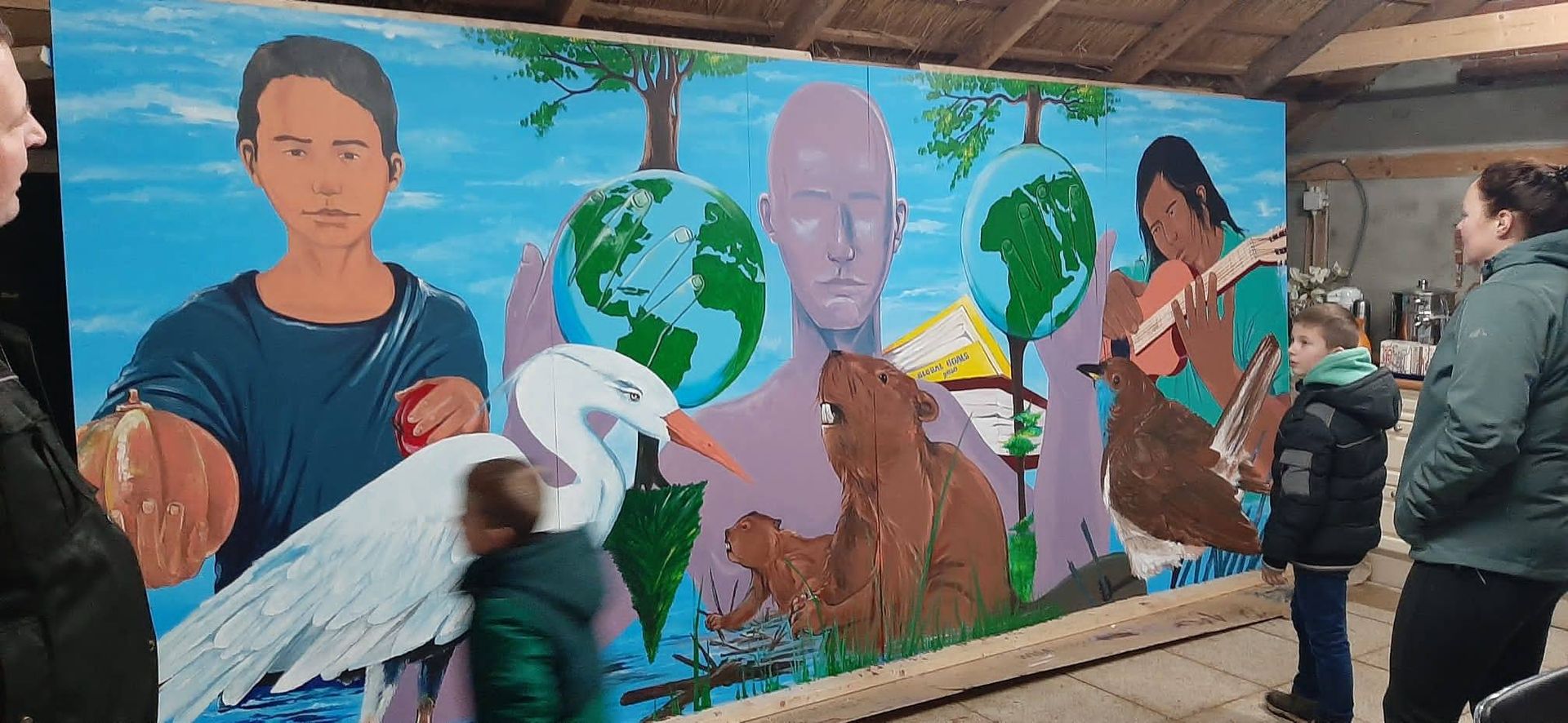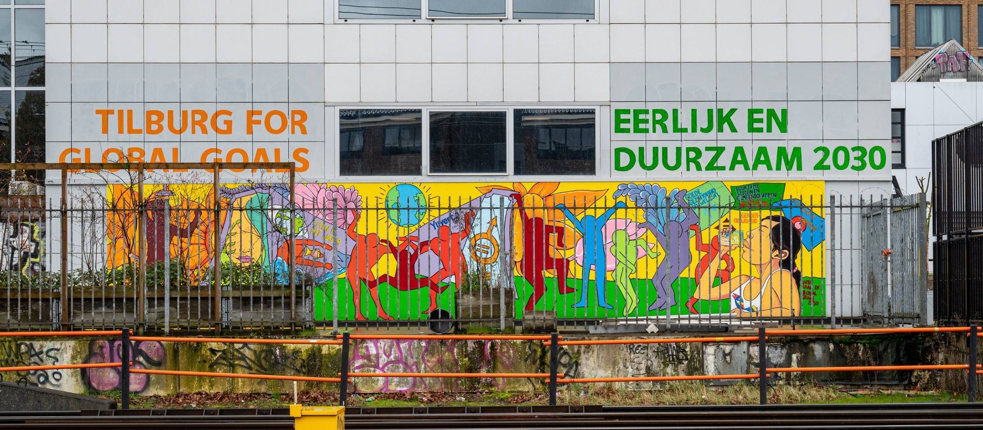 De muurschildering roept op tot een eerlijke en duurzame wereld zowel in Westerwolde
