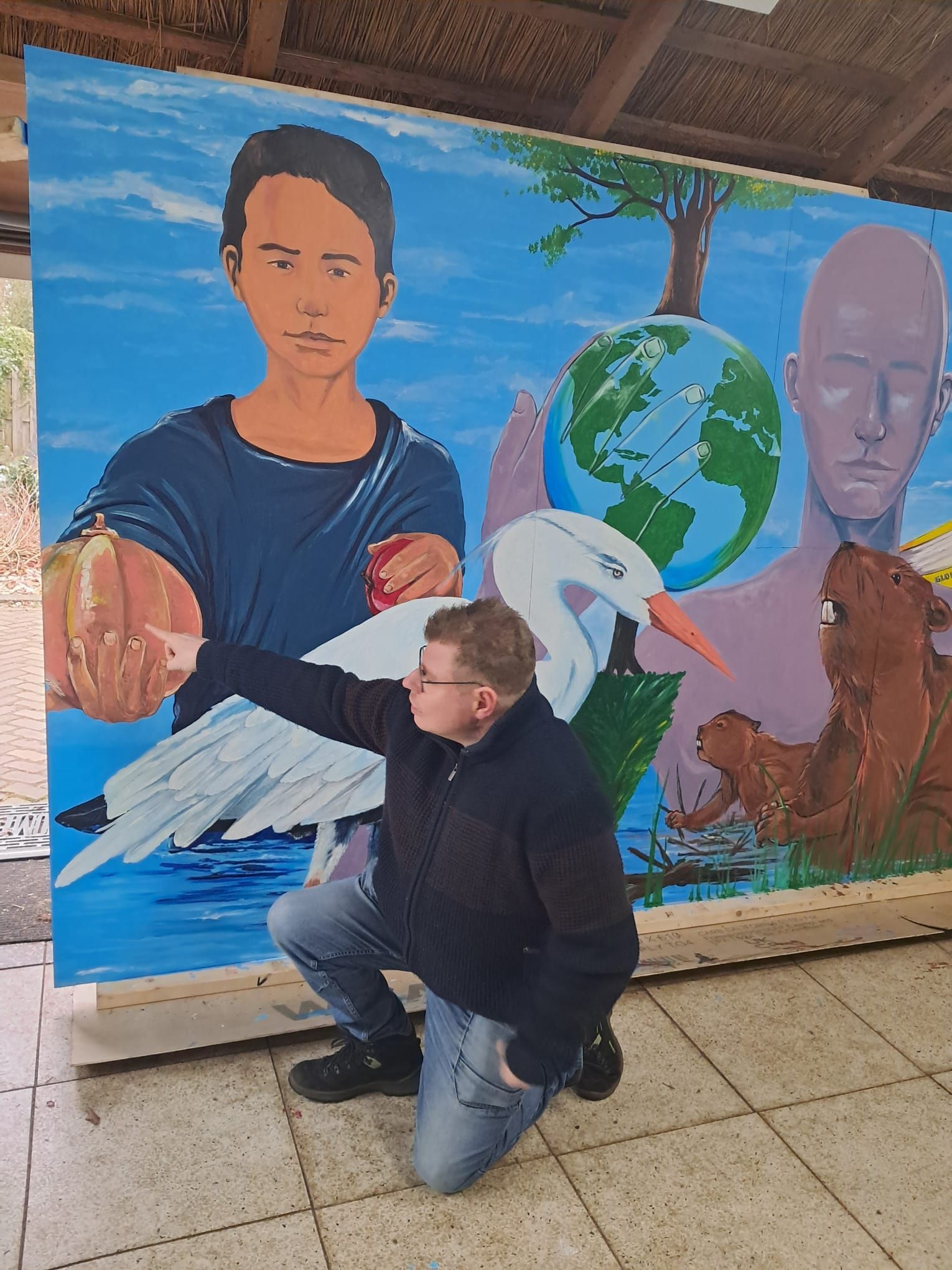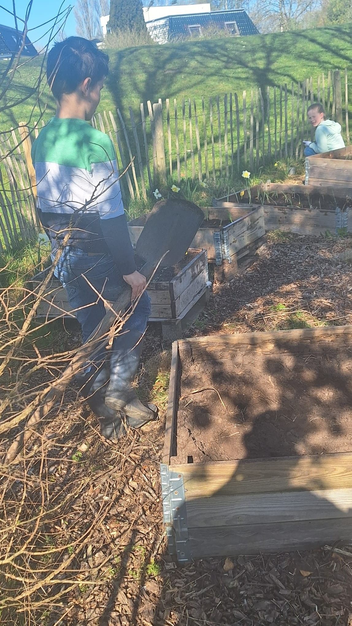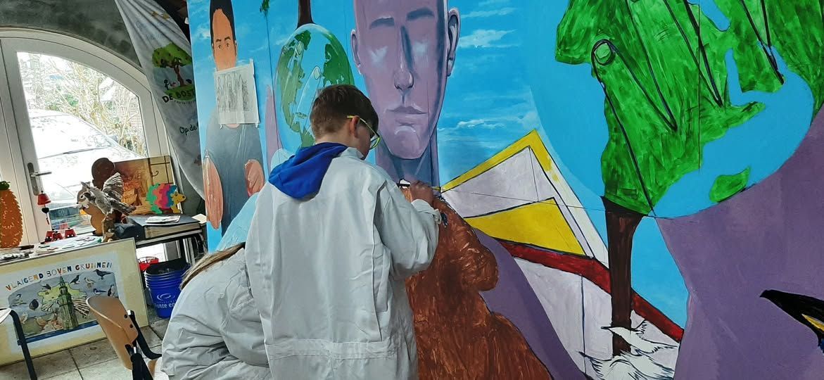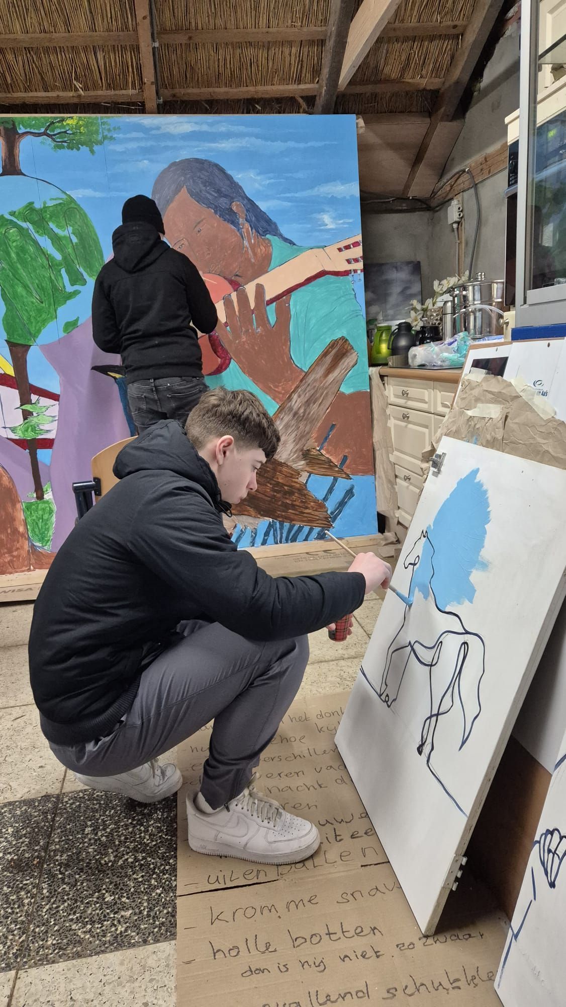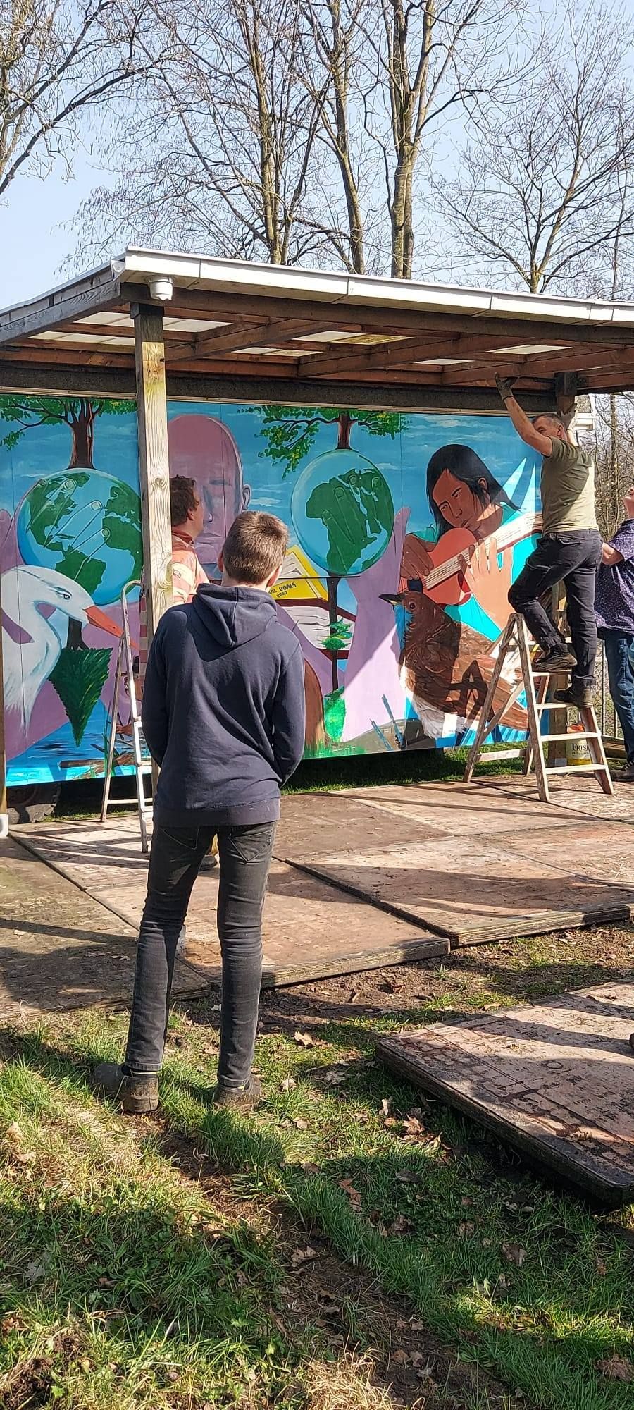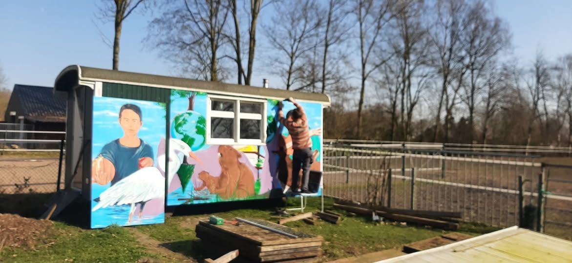 Daarom is Educatiecentrum Bostuin gestart op Tussenvoorziening Wieder van het Dollardcollege met de voor ons bekende SDG Impact lessen en zullen deze power jongeren met hun top docenten Donderdag 13 februari een extra project dag op de Bostuin doorbrengen. Voor de docenten bekend terrein zo legden zij een libellen tuin aan, helpen ze met snoeiwerkzaamheden en is er een potager tuin op het voorhuis plein aangelegd door deze bikkels. In kleine groepen van max 4 per half uur wordt Manuel in de week ondersteund bij het maken van ons gezamenlijk kunstwerk. Op donderdagochtend zullen de Wieder leerlingen hun werk aan de wilgenborg afwisselen met schilderen en pasta koken.